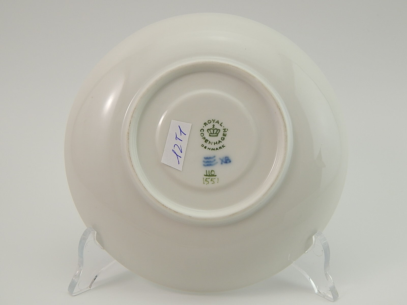 In questa inserzione viene presentata una tazza da tè in porcellana realizzata dalla manifattura Danese Royal Copenhagen nel decoro Green Flower Curved