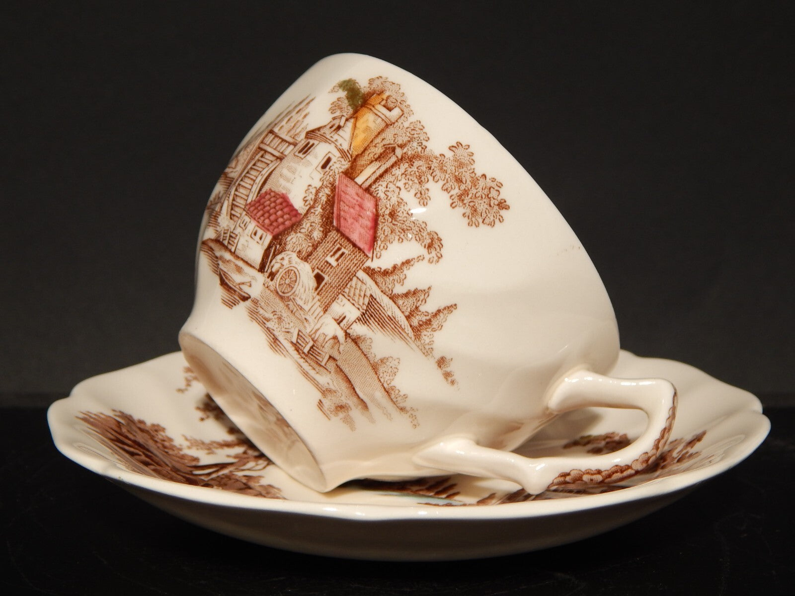 VINTAGE TAZZA DA TE' SEMI PORCELLANA JOHNSON BROS THE OLD MILL STAMPA A MANO