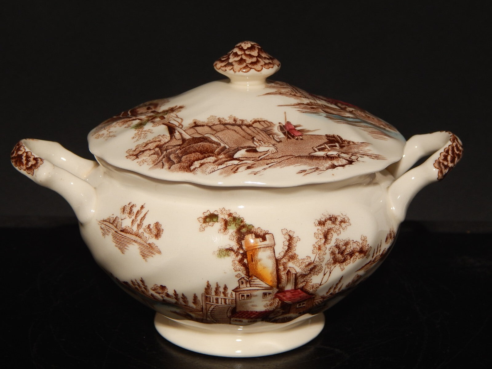 VINTAGE ZUCCHERIERA SEMI PORCELLANA JOHNSON BROS THE OLD MILL STAMPATA A MANO