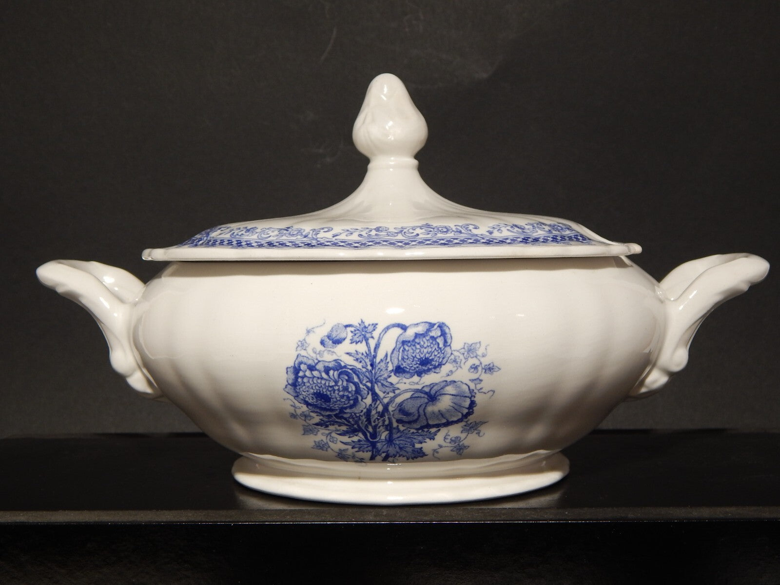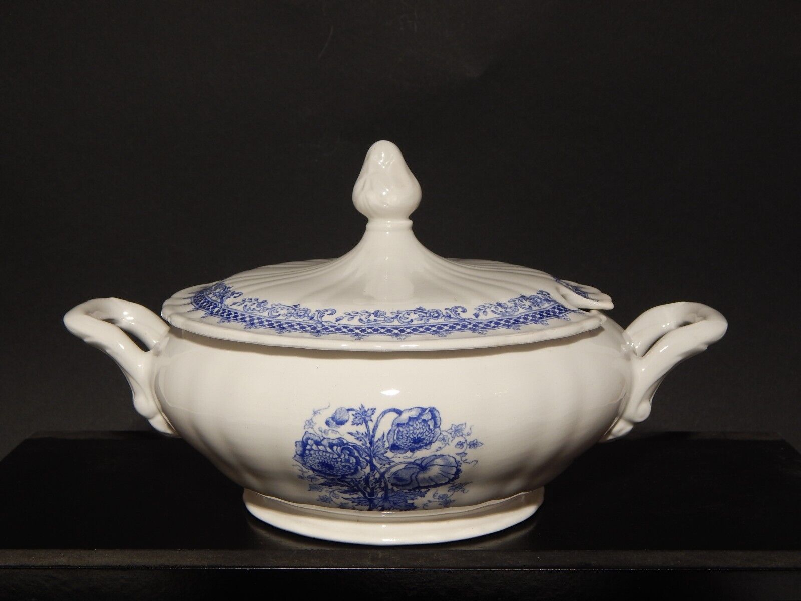 VINTAGE ZUPPIERA LEGUMIERA CERAMICA S.C.I. LAVENO DIAMONDSTONE BIANCO BLU