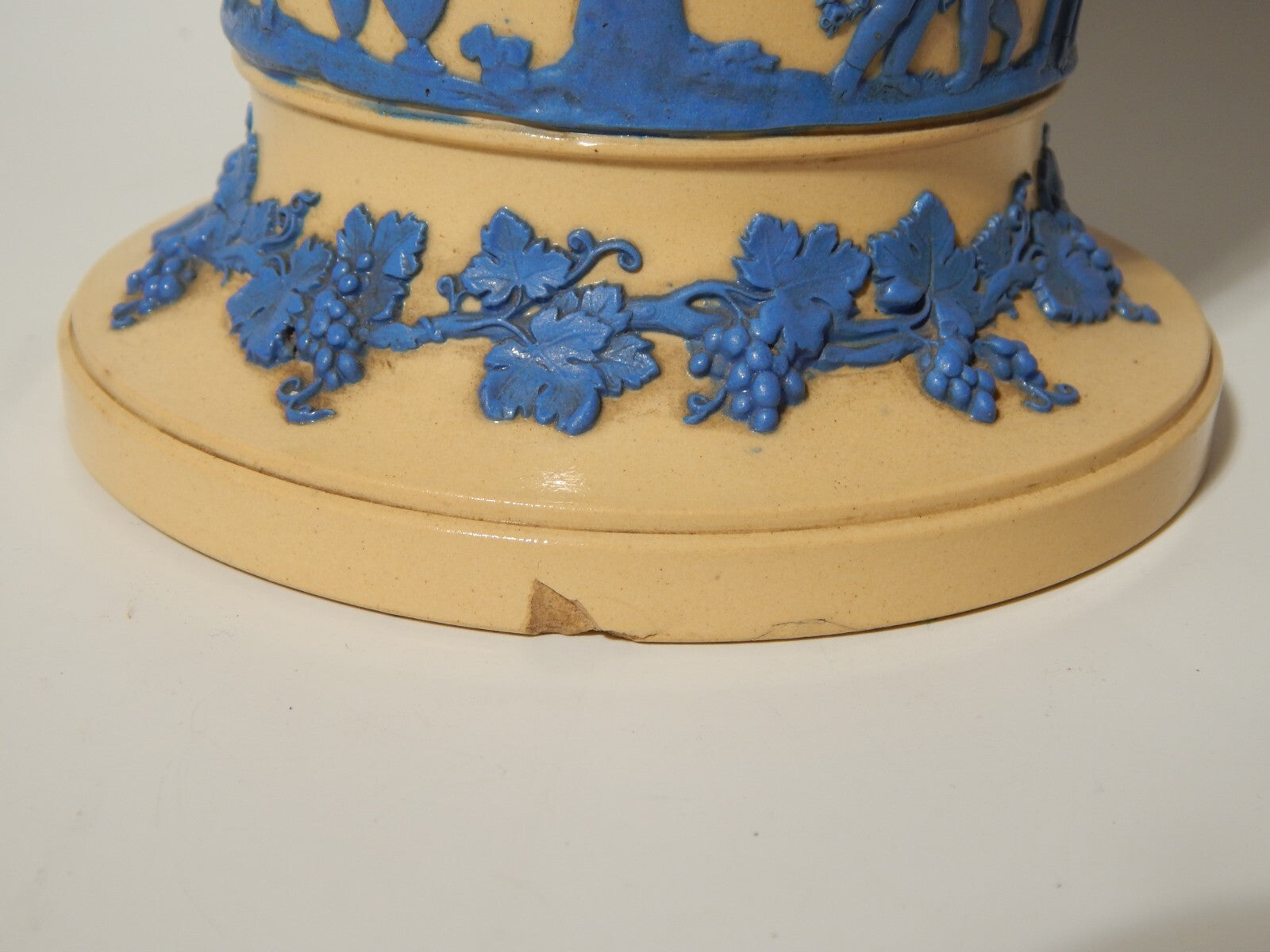 WEDGWOOD ANTICO VASO CERAMICA CREMA CON BASSORILIEVO CLASSICO IN JASPER AZZURRO