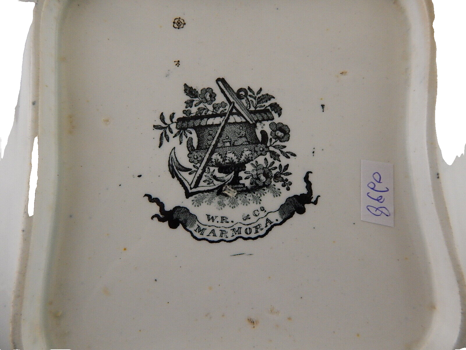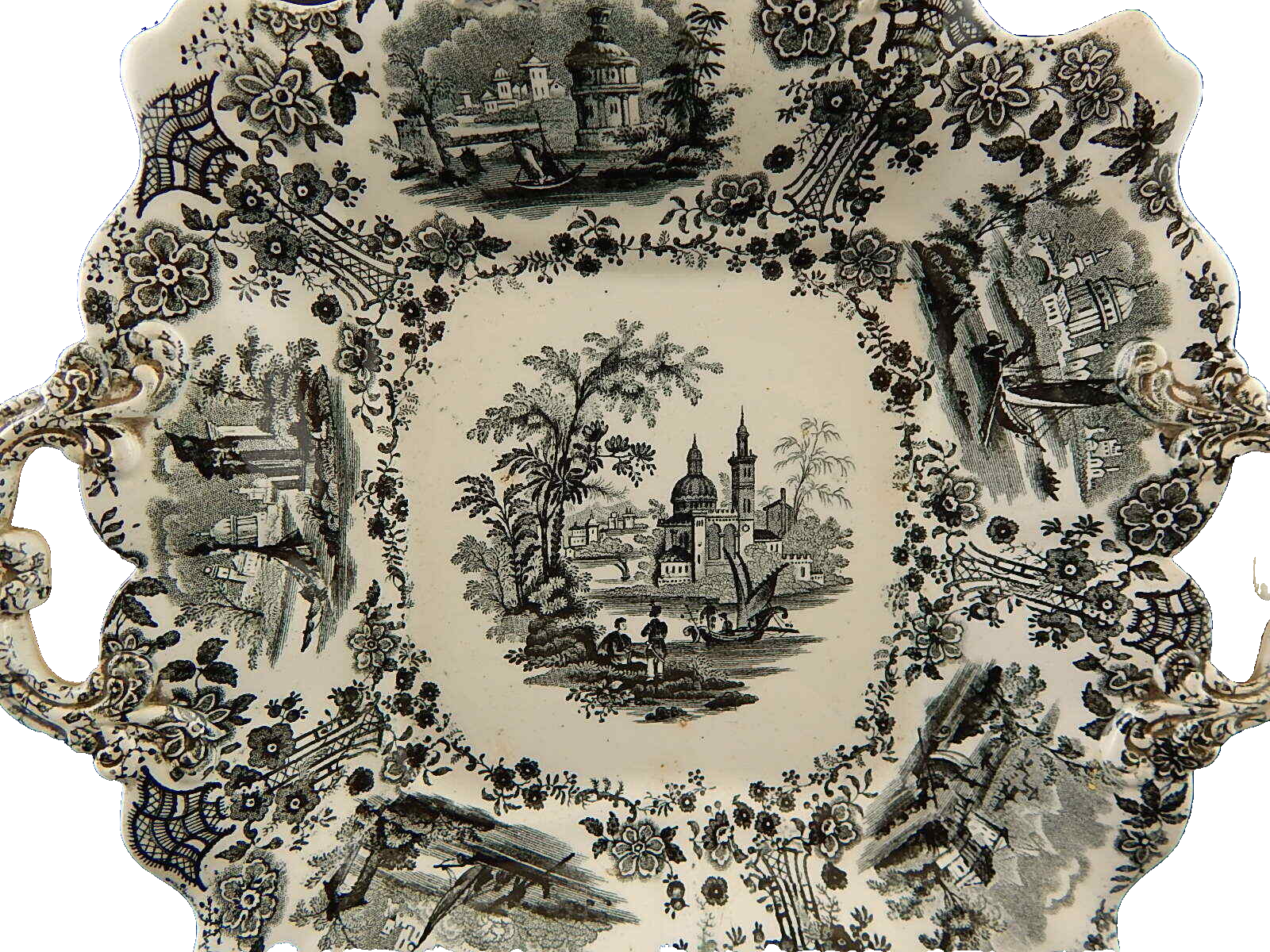 Come mostra il marchio impresso sul retro il piatto risale agli anni '30 del 1800, è decorato con la tecnica del TRANSFERWARE in nero.