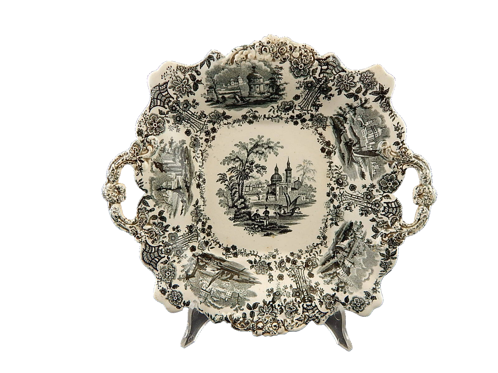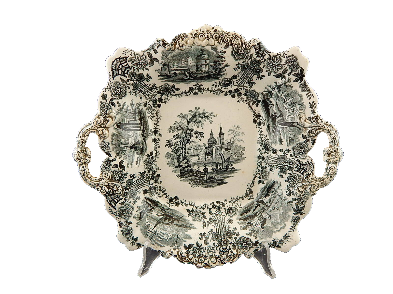 In questa inserzione viene presentato un antico e rarissimo piatto o vassoio con manici della famosa manifattura inglese William Ridgway.