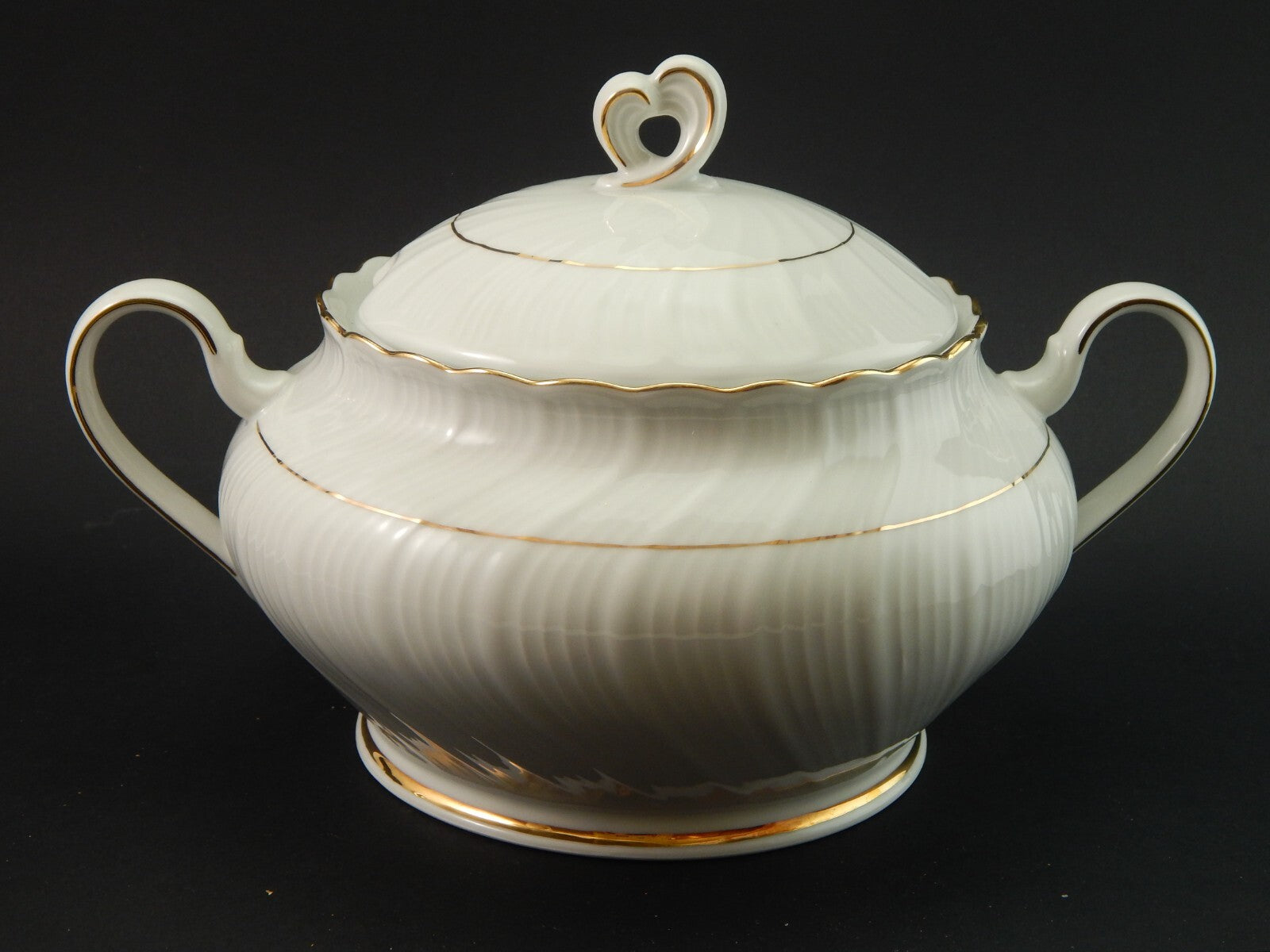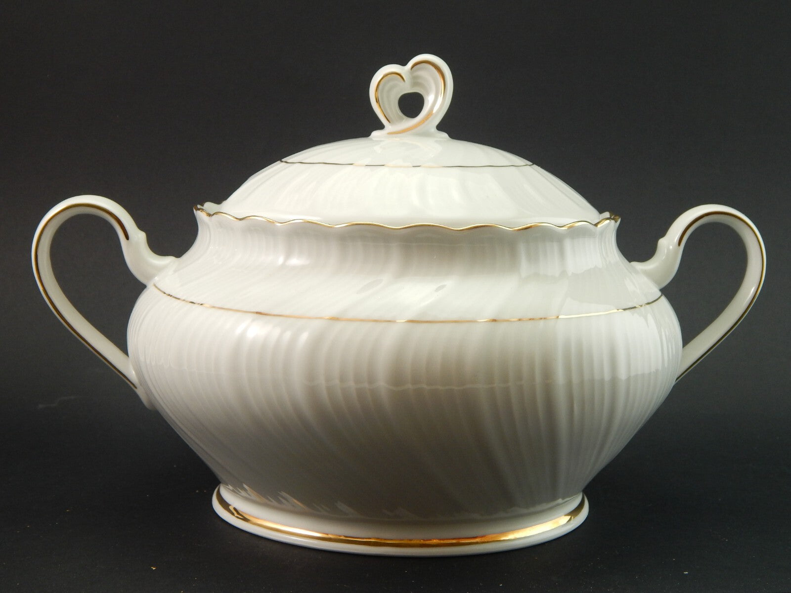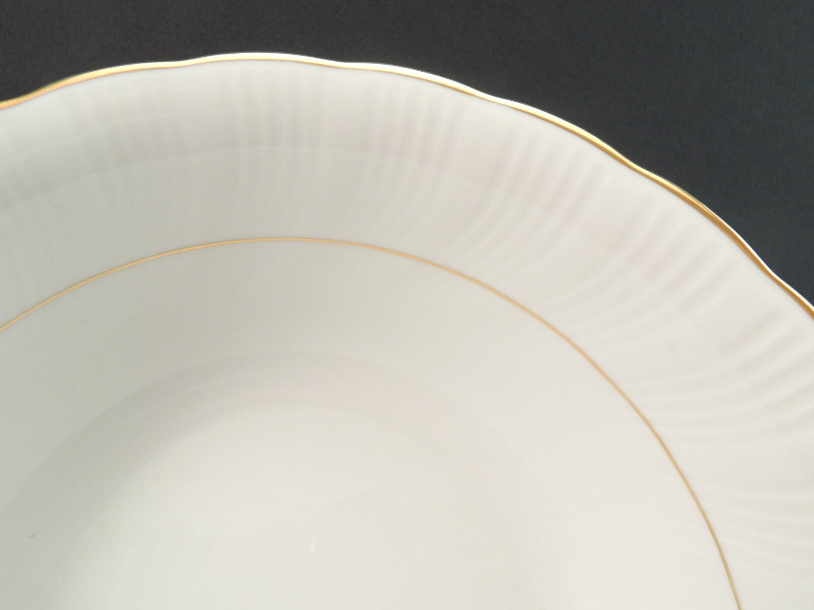 In questa inserzione viene presentato un servizio da tavola in finissima porcellana bianca con profilo in oro zecchino realizzato dalla manifattura tedesca Winterling Bavaria risalente agli anni 70